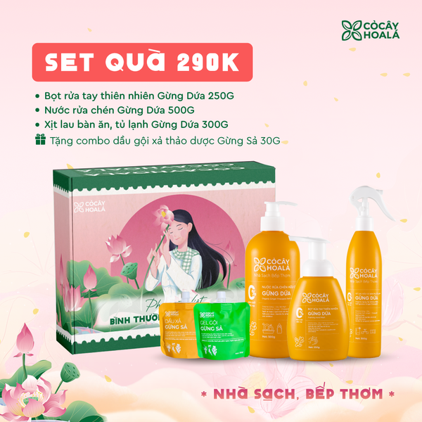 - Combo mini tắm gội (gội xả Gừng Sả - Sữa tắm Gừng Nghệ - Gel vệ sinh X2 Nano Nghệ) - tiện mang đi du lịch hoặc trải nghiệm thử trọn bộ sản phẩm.