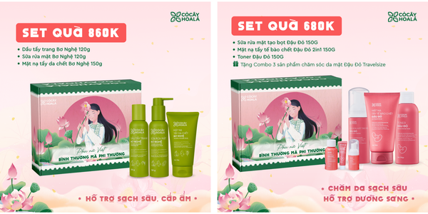 Bộ quà tặng dưỡng da mặt cao cấp được tạo nên từ nguyên liệu bản địa Việt Nam nhà Cỏ Cây Hoa Lá là set quà tặng cao cấp nhưng không thiếu phần tinh tế. Với bộ chăm sóc da Bơ Nghệ, làn da được cấp ẩm - phục hồi chuyên sâu giúp mang đến làn da ẩm mượt, sáng khoẻ cho làn da phụ nữ Việt. Với bộ chăm sóc da Đậu Đỏ làn da mỏng manh của những người bạn yêu thương sẽ được chăm sóc dịu nhẹ nhất, hỗ trợ dưỡng sáng, góp phần ngừa mụn hiệu quả. Hai set quà là đều là những lựa chọn tinh tế và ý nghĩa mà bất kể người phụ nữ nào cũng yêu thích.