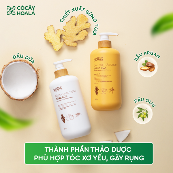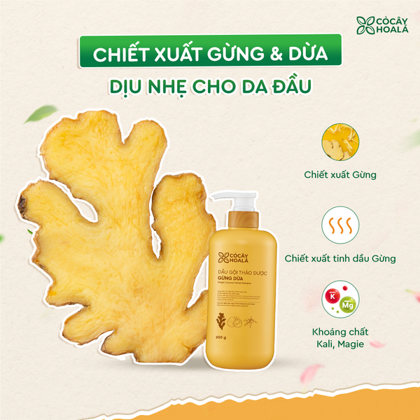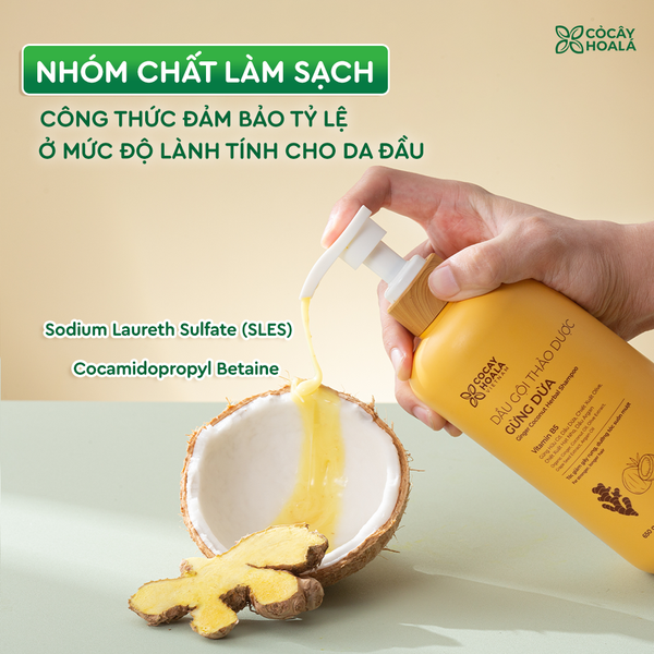 2. Dầu gội thảo dược Gừng Dừa - Chiết xuất từ thảo dược là nền tảng của sự lành tính, dịu nhẹ trên da đầu