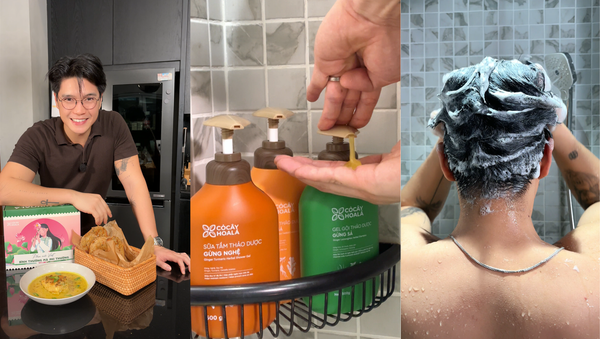 Không chỉ là người chồng tinh tế, Huy Trần còn rất chú trọng trong việc chọn lựa sản phẩm chăm sóc cá nhân cho vợ. Anh chia sẻ rằng sau khi trải nghiệm sản phẩm Cỏ Cây Hoa Lá, anh cảm nhận rõ sự khác biệt khi cả trong dầu gội và sữa tắm đều có xơ gừng thật
