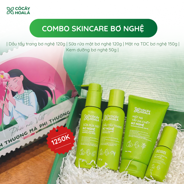 - Set 1.250K: Combo Skincare Bơ Nghệ – dầu tẩy trang, sữa rửa mặt, mặt nạ tẩy da chết và kem dưỡng – mang lại làn da sáng khỏe, rạng rỡ mỗi ngày.