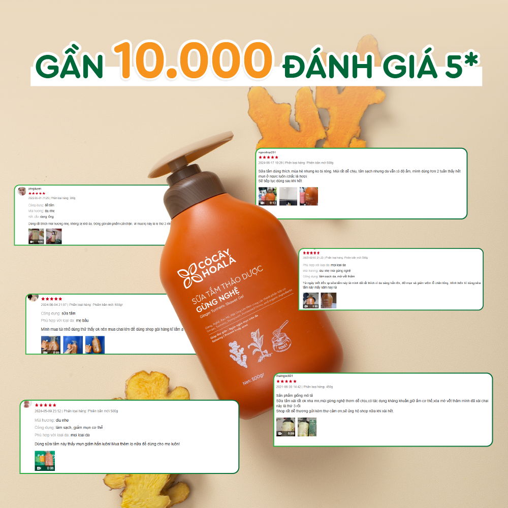 Sữa tắm Thảo Dược Gừng Nghệ Cỏ Cây Hoa Lá là sự kết hợp hoàn hảo từ những nguyên liệu thiên nhiên được tuyển chọn kỹ lưỡng.