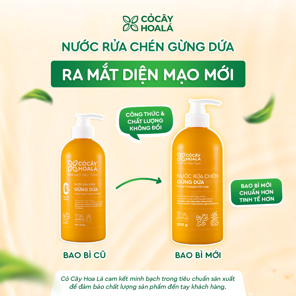- Dịch chiết lên men Gừng và Dứa: Hỗ trợ làm sạch bề mặt chén bát mà không làm hư hại lớp men hoặc để lại dư lượng hóa chất độc hại