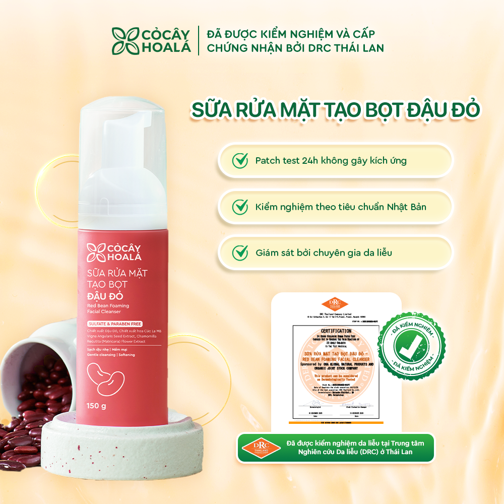 Sữa rửa mặt tạo bọt Đậu đỏ Cỏ Cây Hoa Lá 150g