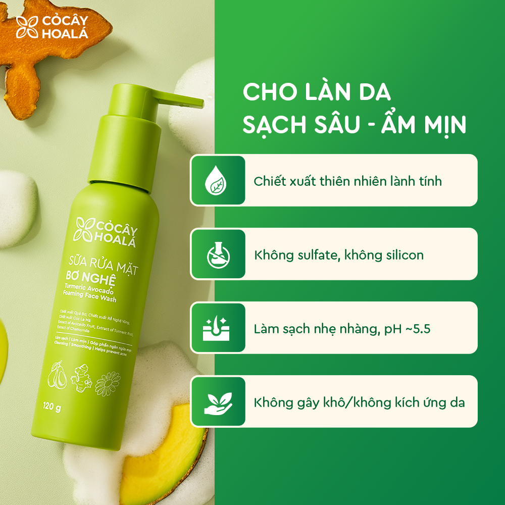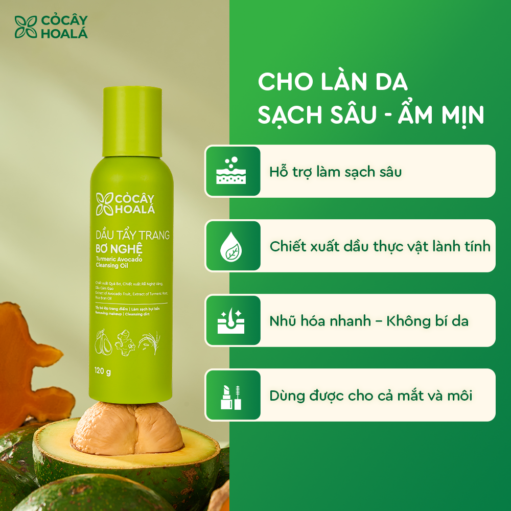 Combo Bơ Nghệ Làm Sạch Sâu Cỏ Cây Hoa Lá (Dầu Tẩy Trang, Sữa Rửa Mặt, Mặt Nạ Tẩy Tế Bào Chết Bơ Nghệ) phù hợp cho da khô