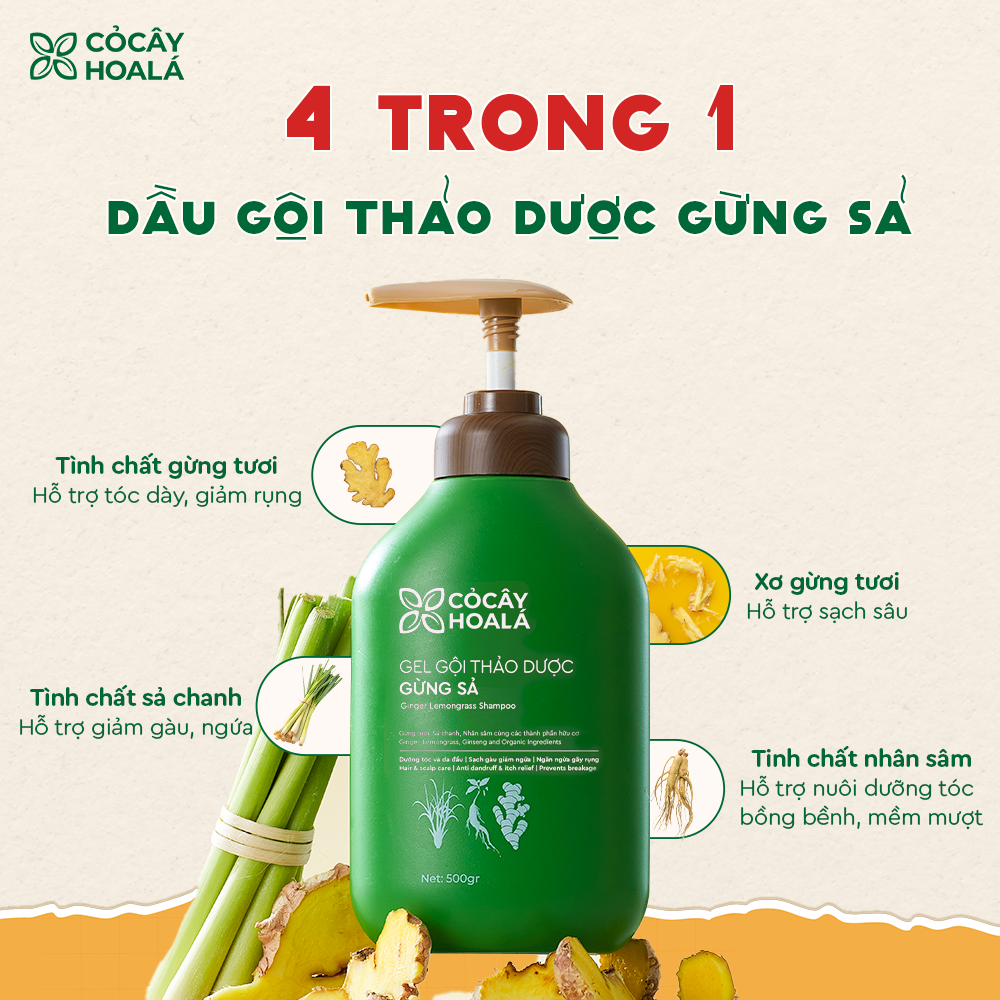 - Làm sạch da dầu và tóc: Với nguyên liệu từ gừng giúp làm sạch da dầu hiệu quả, làm sạch và ngăn n.g.ừ.a gàu. Giúp tóc chắc khỏe, mềm mượt hơn.
