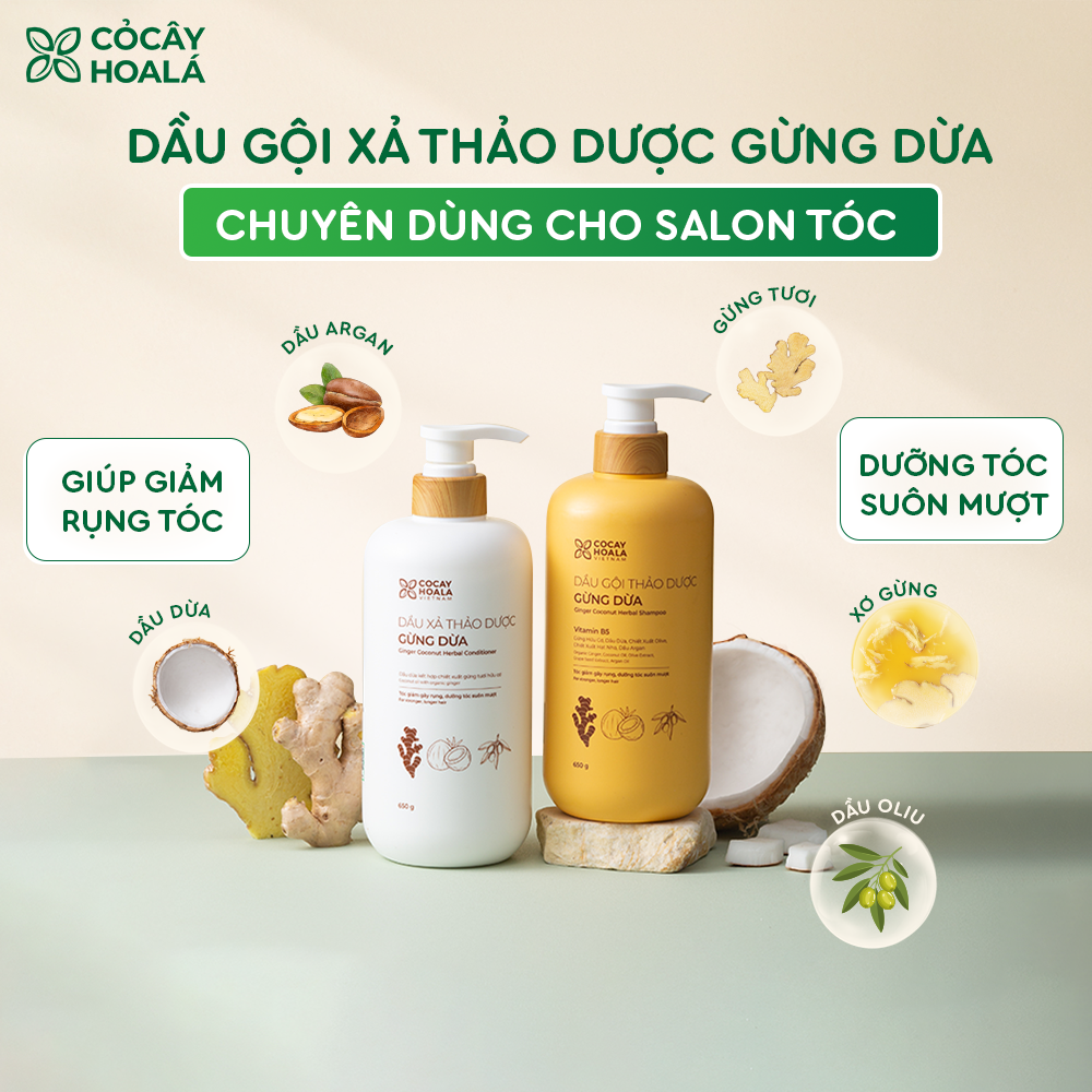 Combo dầu gội xả thảo dược Gừng Dừa Cỏ Cây Hoa Lá 650g