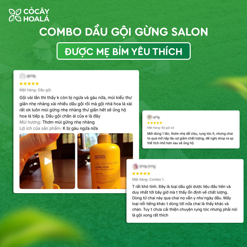 >>> Đừng bỏ lỡ cơ hội sở hữu combo dầu gội xả thảo dược Gừng Dừa Cỏ Cây Hoa Lá với ưu đãi cực khủng. Đặt hàng ngay thôi!