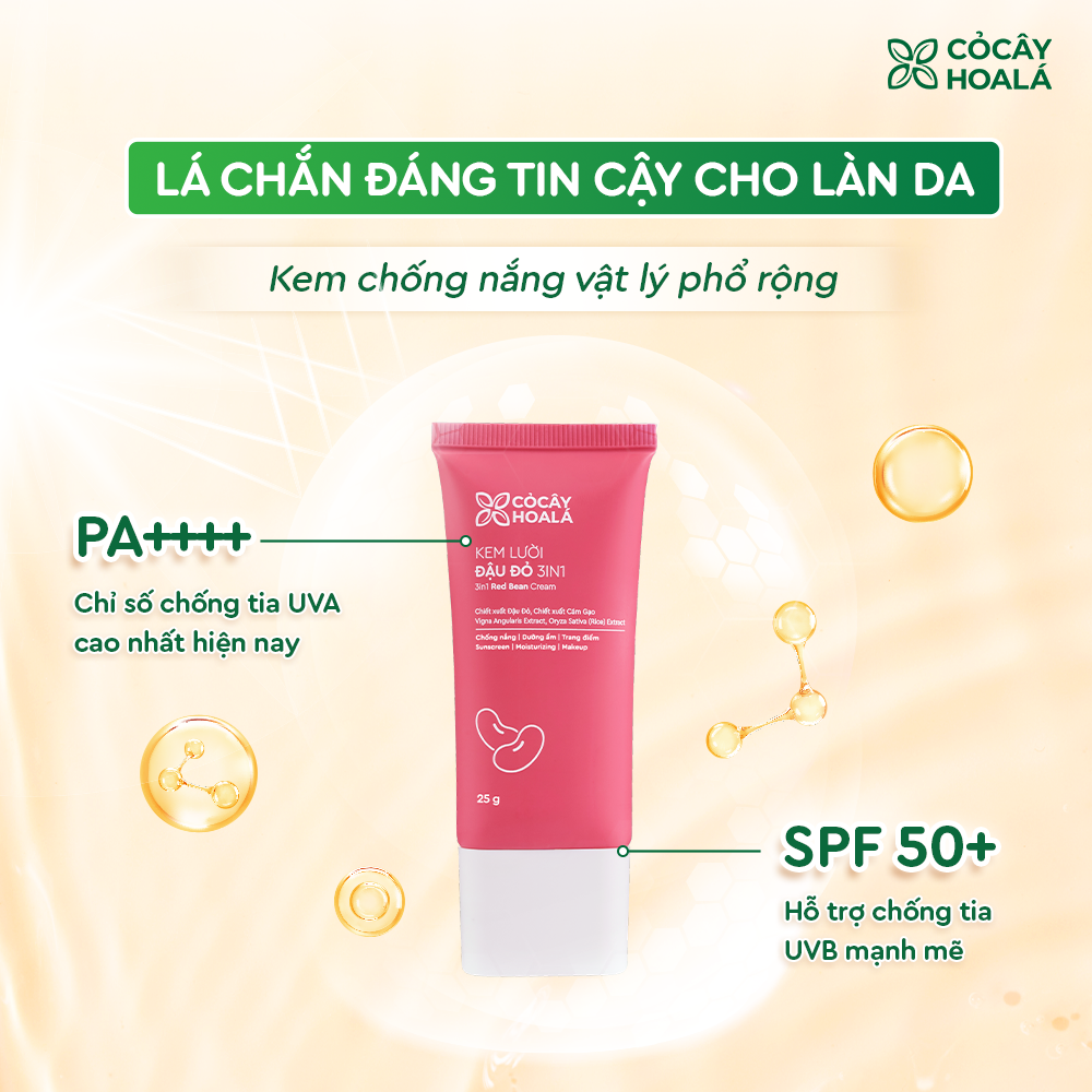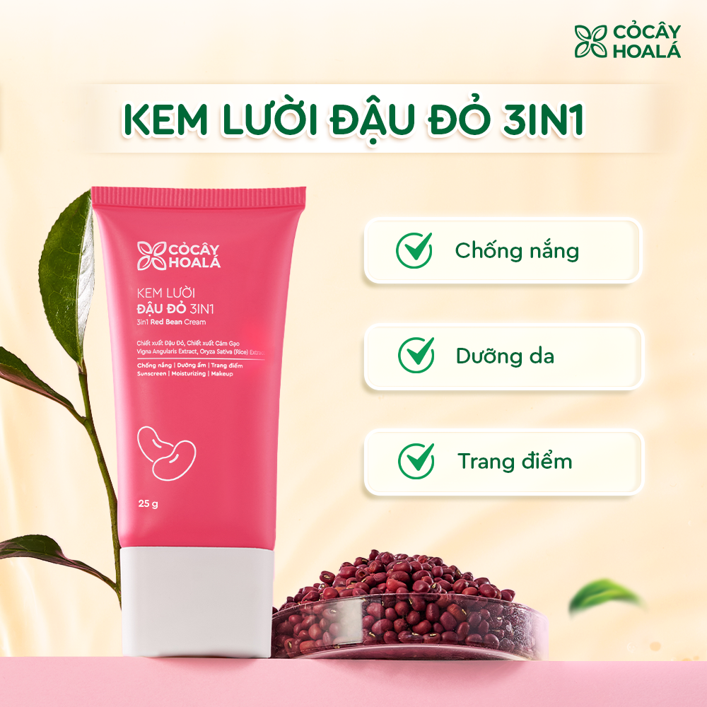 Kem Chống Nắng - Kem Lười Đậu Đỏ 3in1 Cỏ Cây Hoa Lá, được đánh giá cao nhờ tính năng 3in1 tiện lợi:
