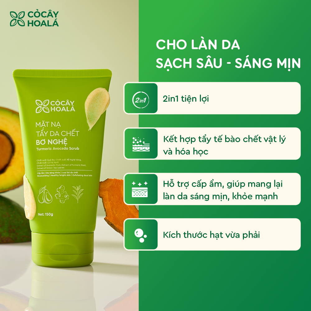 Mặt Nạ Tẩy Da Chết Bơ Nghệ Cỏ Cây Hoa Lá giúp