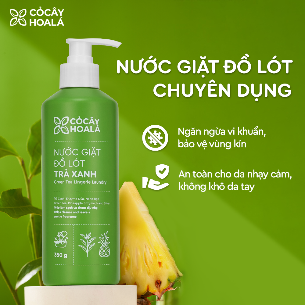 Nước giặt đồ lót trà xanh Cỏ Cây Hoa Lá 350gr kháng khuẩn, ngăn ngừa nấm & làm sạch hiệu quả