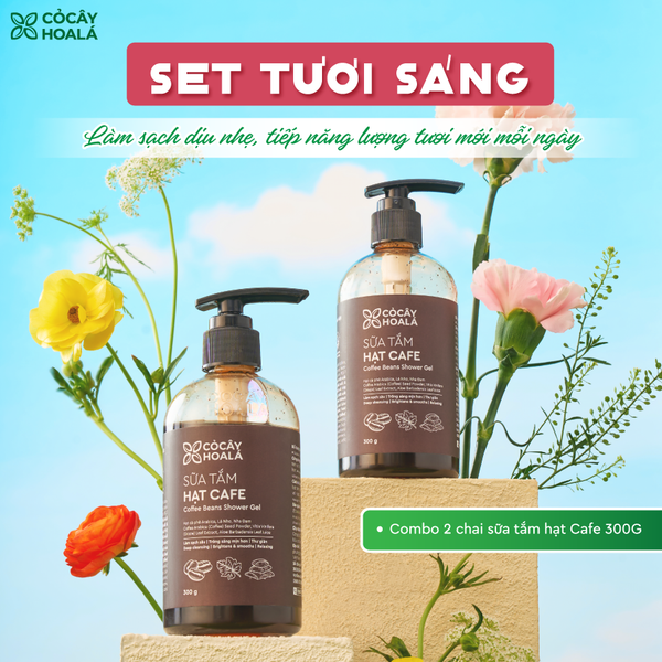 Combo gồm 2 chai sữa tắm hạt cà phê với hạt cà phê arabica giúp loại bỏ tế bào chết, giúp cho làn da được sạch sâu, trông sáng mịn hơn. Hỗ trợ cấp ẩm cho da mịn màng, mềm mại nhờ chiết xuất lá nho, nha đam, táo.