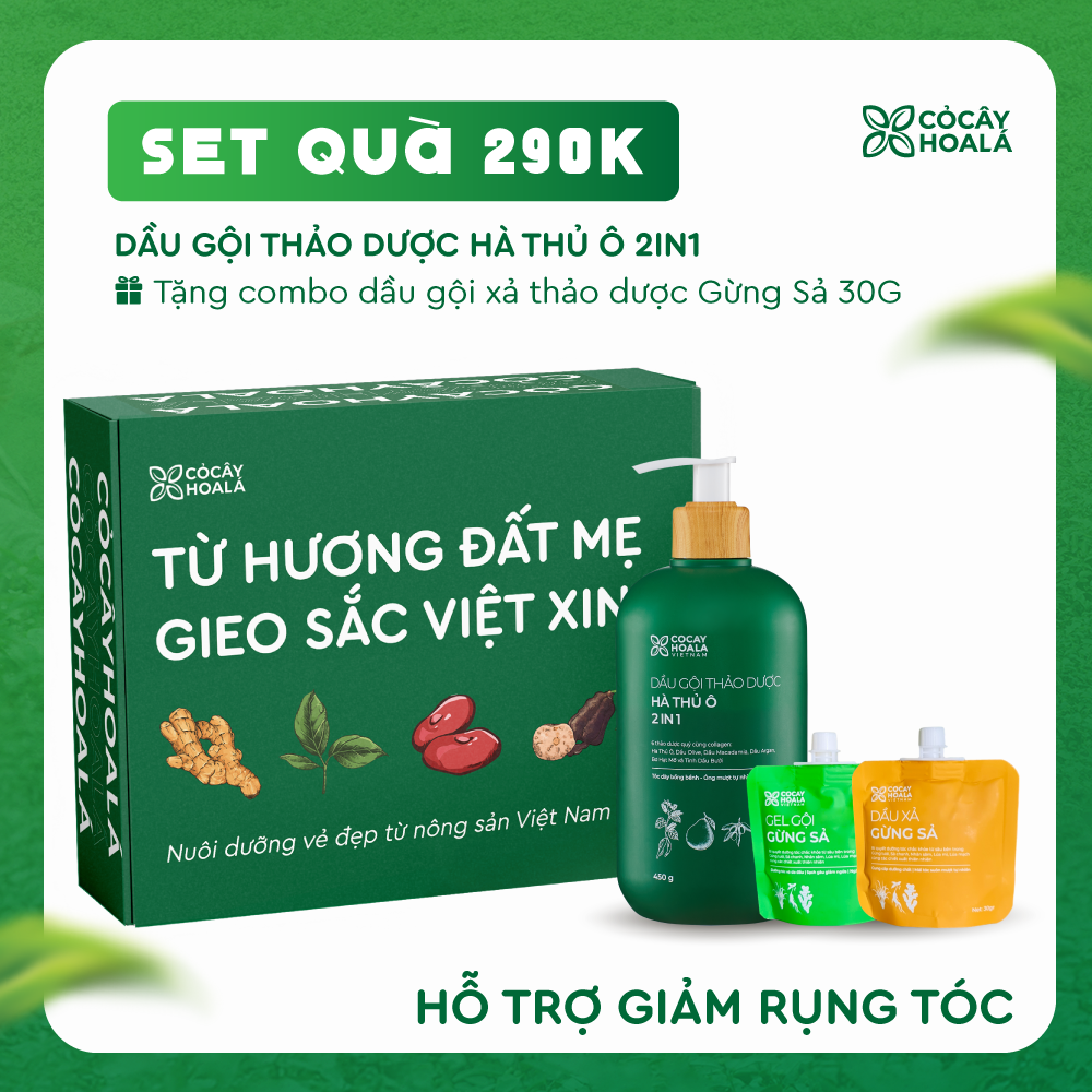 [SET QUÀ 290K] Set 4: Dầu gội thảo dược Hà Thủ Ô - Tặng sữa tắm Gừng Nghệ 30g & Gel X2 Nano Nghệ 20g