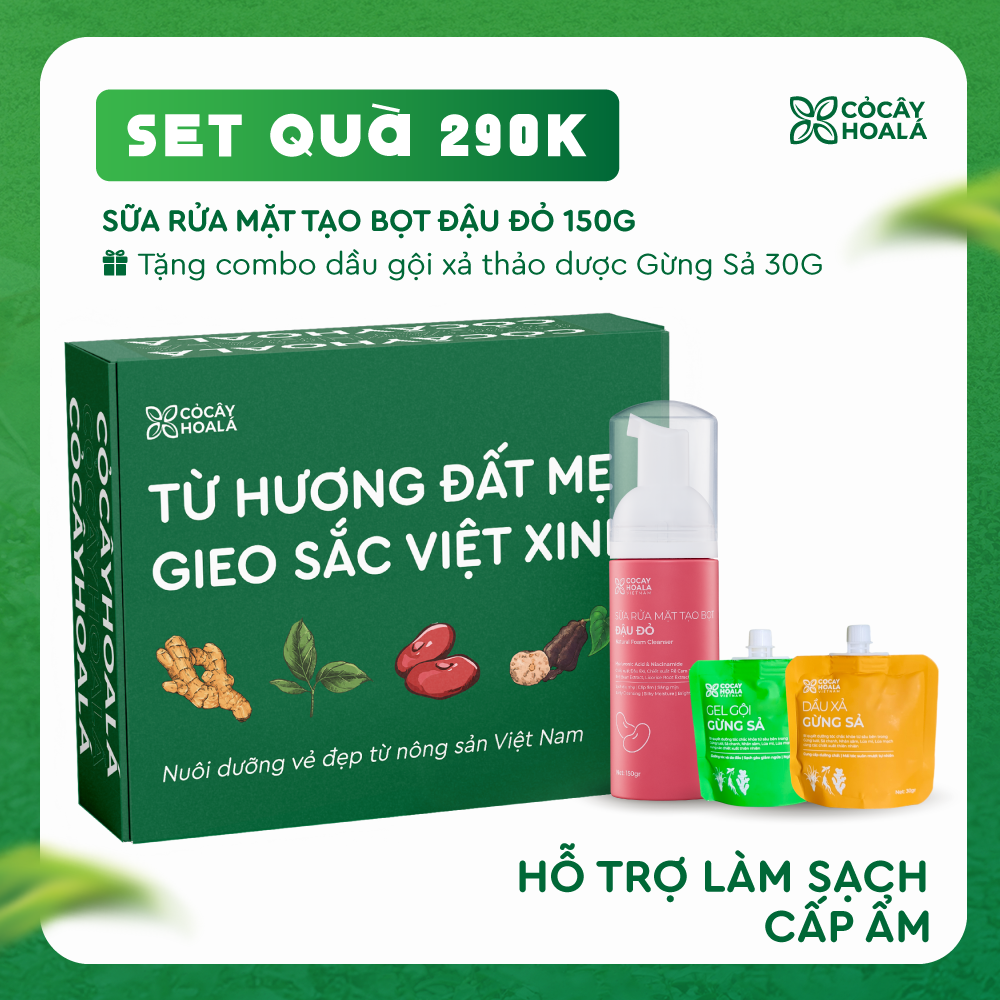 [SET QUÀ 290K] Set 5: Sữa rửa mặt Đậu Đỏ - Tặng cặp Gội Xả Gừng Sả 30g