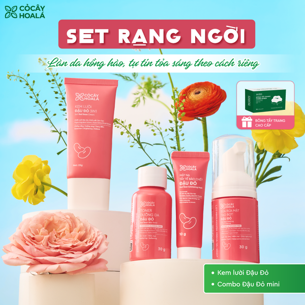 Combo Skincare Đậu Đỏ travel size: Bộ chăm sóc da mini tiện dụng, hỗ trợ làm sạch và chăm sóc da hằng ngày với thành phần thiên nhiên lành tính, phù hợp nhiều loại da. Thiết kế nhỏ gọn, dễ mang theo khi đi làm, du lịch hoặc công tác.