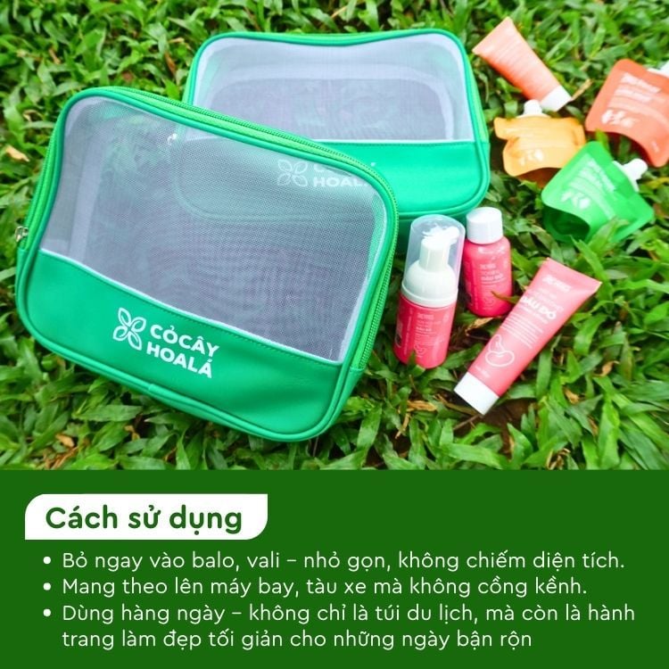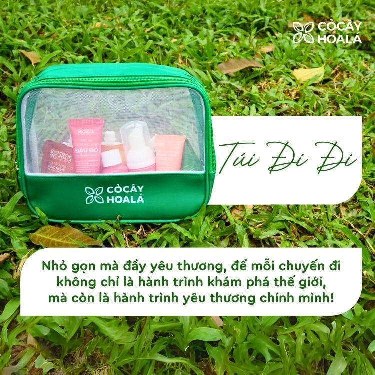 Túi Đi đi là bộ sản phẩm chăm sóc cá nhân từ Cỏ Cây Hoa Lá, được thiết kế nhỏ gọn nhưng đầy đủ, giúp bạn luôn rạng rỡ và tươi tắn dù ở bất cứ đâu.